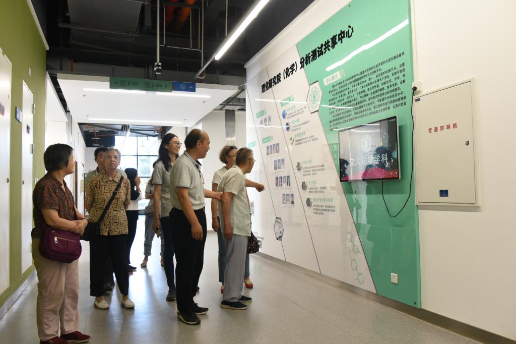 特地邀请了李运康教授等六位退休教师代表来到创新港参观。老教授们兴致勃勃地参观了西部科技创新港19号楼化学测试平台、三个研究所的研究平台、先进的废液废气处理系统及交大化学发展陈列室等。在参观过程中,老教授们不住地感叹设备先进、实验条件优越,真是今非昔比,频频称赞化学的发展速度。