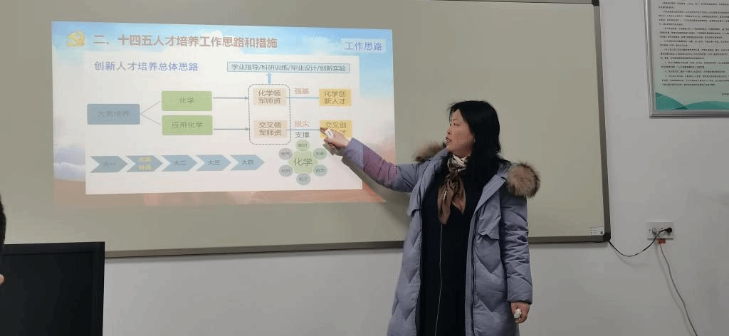 “十四五”规划和人才培养的崭新模式,要求大家保持不畏艰险、锐意进取的奋斗韧劲,坚定信心决心,强化实践教学环节,以“厚基础、强交叉、重实践”为教育理念,坚持“三全育人”,培养不仅具备扎实的化学专业知识、精湛的实验技能和开阔的国际视野,更兼具科学精神和人文素养、有担当、能干事的综合型创新人才。