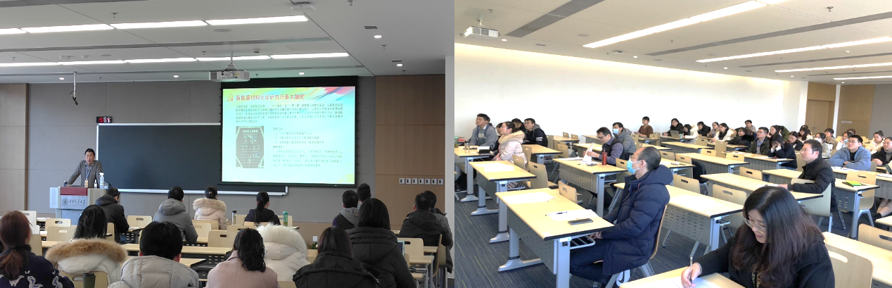 院长、党委副书记丁书江、副院长段新华以及新能源材料化学研究所师生党员共同出席此次支部党员大会。会议由新能源材料化学研究所师生联合党支部副书记孙泽慧同学主持。