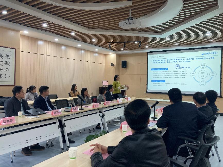 的科研情况。紧接着,中化蓝天人力资源部副总经理李媛详细介绍了中化蓝天的公司背景、产品理念、人才培养,并回顾了西交大与中化蓝天的校企合作历程。随后,陕西新材料副总经理杨会娥向参会人员介绍了研发中心的相关情况。中蓝金冷人事行政部经理康艳艳向参会人员介绍了其公司背景和发展前景。