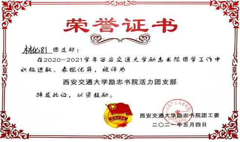 材料化学81班团支部在典礼上被授予了“西安交通大学励志书院活力团支部”及“西安交通大学励志书院青年大学习优秀团支部”称号。