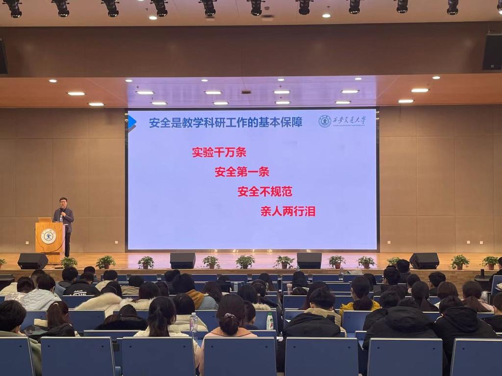 组织2021级研究生新生和新入职教工参加实验室与资产管理处举办的实验室安全讲座。