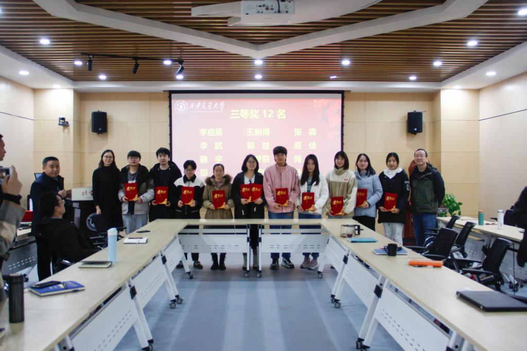 张志成书记和丁书江院长为获得特等奖的熊杰同学颁奖,熊杰同学发表获奖感言,对辛勤培育的导师表示崇高的敬意。他表示,今后要以更高的标准严格要求自己,将感恩作为对自己的激励和鞭策,以认真严谨的求学态度继续努力学习,坚持钻研和探索,取得更加优异的成绩,回报社会,成为为国家的建设和发展有用的人才,也鼓励课题组的同学们都能继续努力,共同进步。赵程程等8名同学获得一等奖,王熖瑶等13名同学获得二等奖,李启蒸等12名同学获得三等奖,幸运飞艇