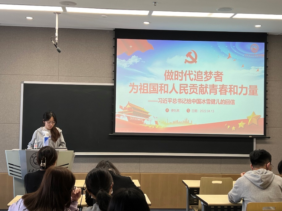 副院长、高分子师生联合党支部书记张彦峰同志领学“习近平总书记给中国冰雪健儿的重要回信精神”,介绍了社会各界包括运动健儿、高校师生等对回信精神的热议。张彦峰同志将习近平总书记的嘱托和科研工作结合起来,进行了系统的概述。他说,“必须积极主动学习新知识新思想,练就过硬本领。科研道路没有一马平川,创新之途不会鲜花满径,但我们不能因此而踟蹰不前,应该以更加开放的思路和积极的心态去迎接挑战。”“要坚持面向世界科技前沿、面向经济主战场、面向国家重大需求、面向人民生命健康,以医工应用为导向,与我校强势工科交叉融合,聚焦5G与人工智能、化学储能、流行病监测与防治领域的新化学材料、新化学合成方法、新化学反应机理。”