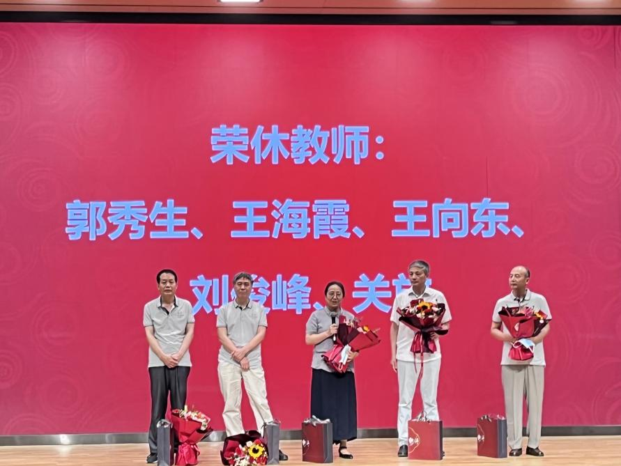 特意为荣休教工举办荣休仪式。青年教师代表上台为前辈送上鲜花与礼品,丁书江带领与会人员一同回顾了5位前辈工作中的点点滴滴和对幸运飞艇