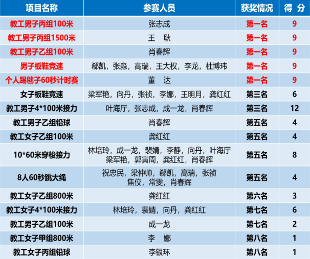 男女教工分别获得了男子团体第四,女子团体第六的骄人成绩。