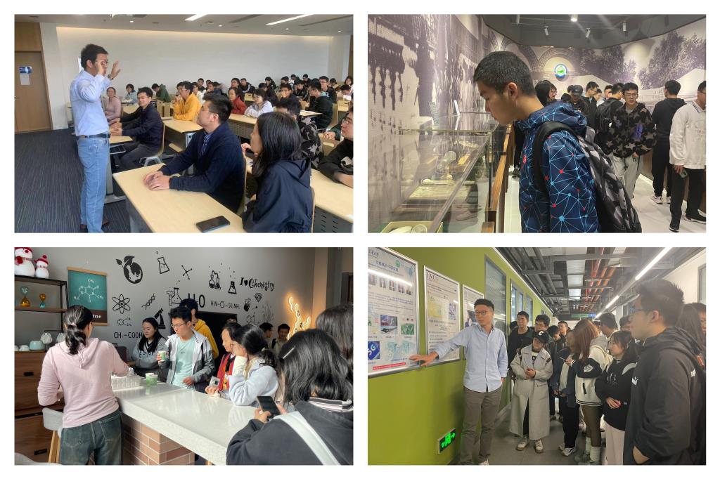 “欢迎同学们来到我们课题组……”“大家可以看一下,墙上的海报显示了我们实验室最近的主要研究工作……”各个研究团队的老师们“尽锐出战”,热情地向大家介绍了各自的研究方向和工作特色,展现了丰富多彩、具有无限可能的化学研究的魅力。从能源存储到生命健康,从 航天军工到文物保护,从光电材料到药物分子,从小分子合成到高分子应用,从纳米颗粒至复合材料,同学们被化学研究涉及的新奇的方向和先进的应用深深吸引,纷纷表示希望在有机会后续的学习中能尽快参与到科研工作。