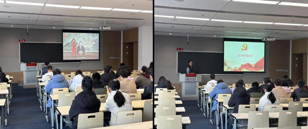 刘乐老师系统回顾了2024年支部在人才培养、科研、支部建设等方面的工作。在人才培养方面,支部始终将立德树人作为根本任务,通过开展形式多样的教育活动,引导学生树立正确的世界观、人生观和价值观,帮助学生掌握扎实的专业知识和技能。一批青年教师顺利获得了教学资格,迈过了站上讲台的最后一道坎。在科研工作上,支部党员积极投身科研项目,取得了一系列创新性成果,多位老师同学在顶刊上发表了高水平论文,实现突破。在支部建设方面,支部不断加强自身建设,完善组织制度,规范党内生活,增强了支部的凝聚力和战斗力。刘乐老师勉励大家,要勤学善思,做好个人总结和未来发展规划。既要脚踏实地,立足本职工作,一步一个脚印地做好每一项任务;又要仰望星空,树立远大理想,不断追求卓越,努力在各自的工作领域中取得更大的成就。