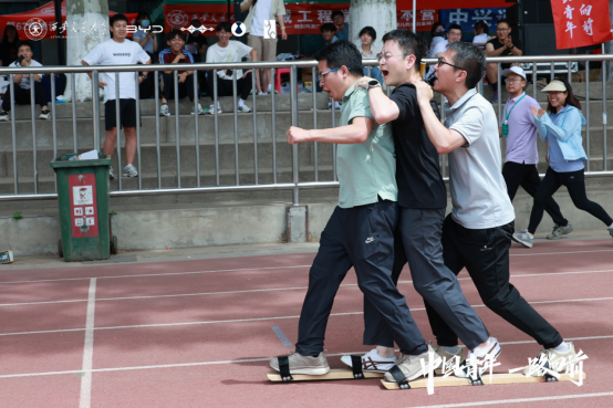教工同样表现亮眼。张志成老师在教工男子丙组100米项目中以稳健发挥夺得第二名,肖春辉、张志成、张永亮、张侃老师领衔的教工男子4×100米接力凭借稳健的起跑与优异的速度斩获第四名。此外,郗凯、张淼、高瑞、欧阳炜艾、崔晨晖、李龙等老师组成的队伍在男子板鞋竞速项目中表现卓越,以出色的团队协作能力荣获第二名。赛场上,教职工们或奋勇冲刺、或咬牙坚持,每一滴汗水都诠释着化学人“精勤求学、追求卓越”的信念。