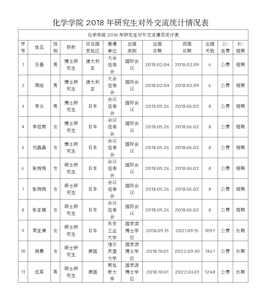 幸运飞艇开奖网 2018年研究生对外交流统计情况表