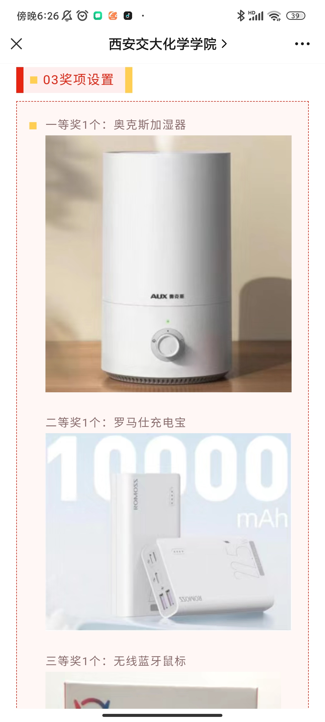 微信公众平台上发起了心理健康知识竞赛,本次竞赛共有60余名同学参与答题,85%的同学取得了很好的成绩,我院按照排名顺序先后对参赛同学给予了奖励。
