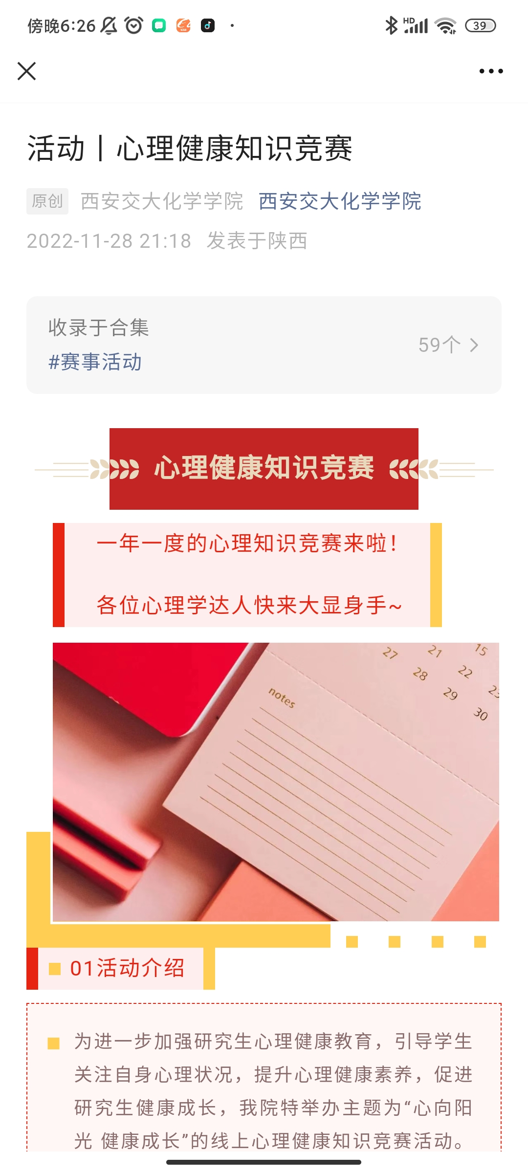 为进一步加强研究生心理健康教育,引导学生关注自身心理状况,提升心理健康素养,促进研究生健康成长,我院特于2022年12月开展主题为“心向阳光,健康成长”的心理健康主题月系列活动。