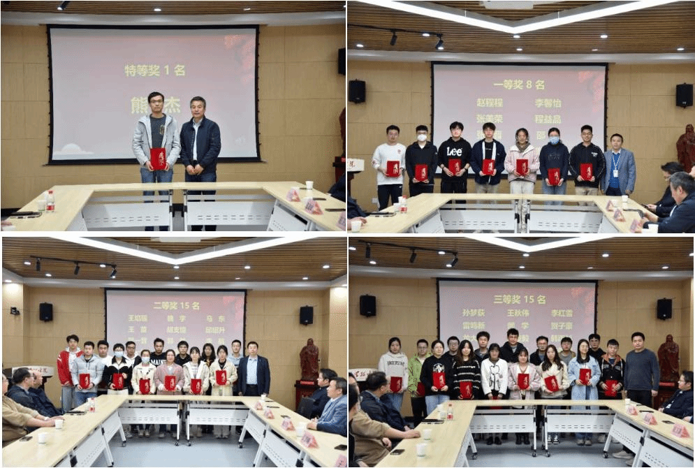 其他领导与课题组老师为其他获奖同学颁奖并表示祝贺。