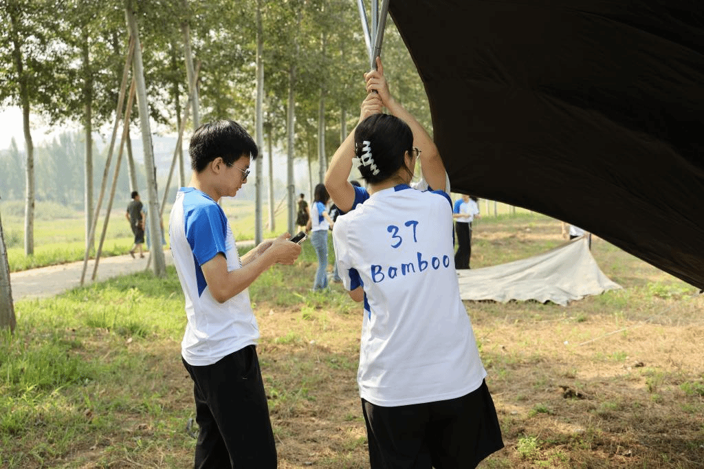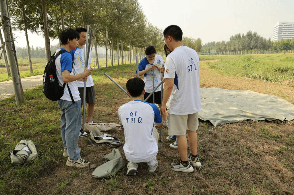 活动开始前,师生分工合作,积极投入到活动场地的布置中,在烈日骄阳下搭建帐篷,分配食材,展示了团队协作性和凝聚力,也为活动增添了趣味。