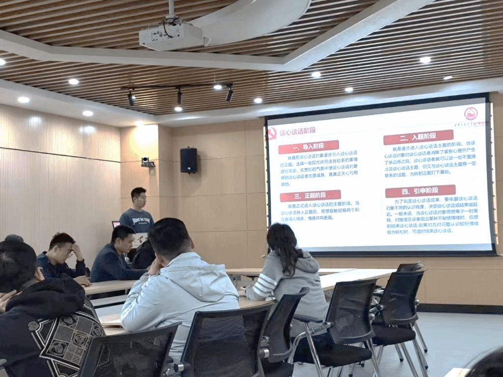 副院长张彦峰,党支部书记成一龙进行总结发言。两位老师对支部学生党员的科研及就业问题表示关心,提到了发展新质生产力的问题。张彦峰老师提出改善工位卫生的问题,成一龙老师强调了党员同志应发挥模范带头作用,积极主动参与党支部建设。